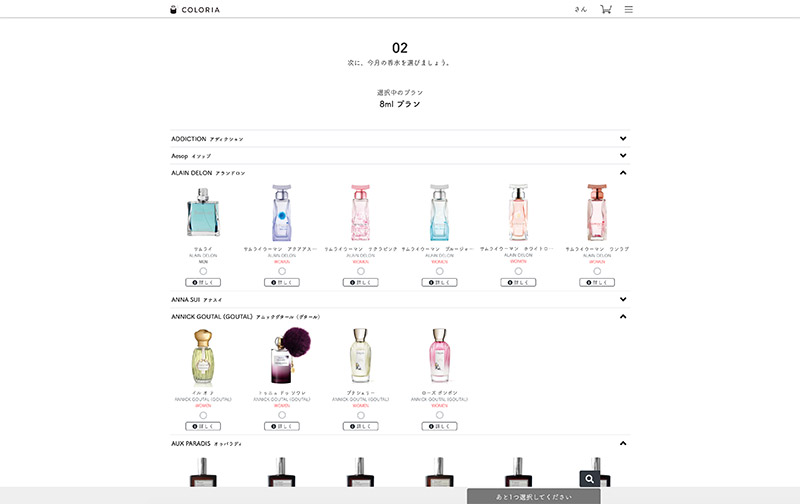 続いては、サービスに登録して香水を選ぶ流れです。