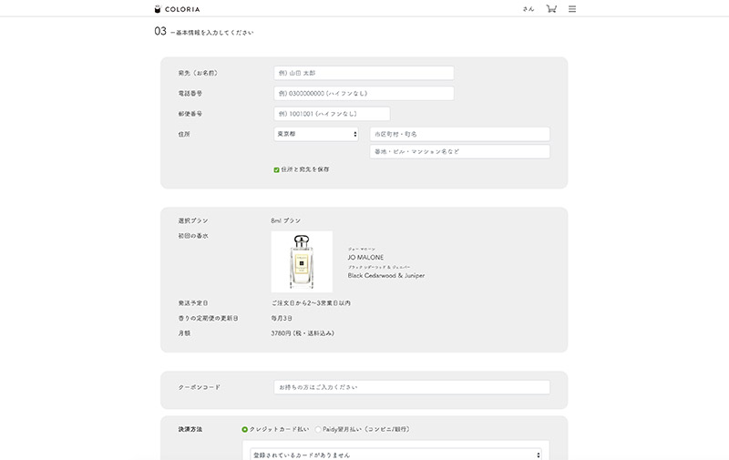 登録ステップ4. 決済をして香水が届くのを待つ!
