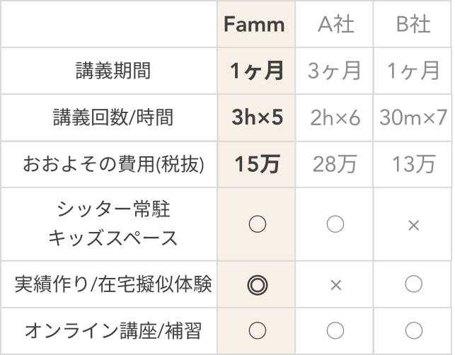 しっかりとした企業のスクールは、どこも20万〜40万前後(期間にもよる)の場合が多いので、「Famm」さんのフリーランスとして働き始める最低限の知識を最短で身に着けるという方針は、とてもいいと思います。